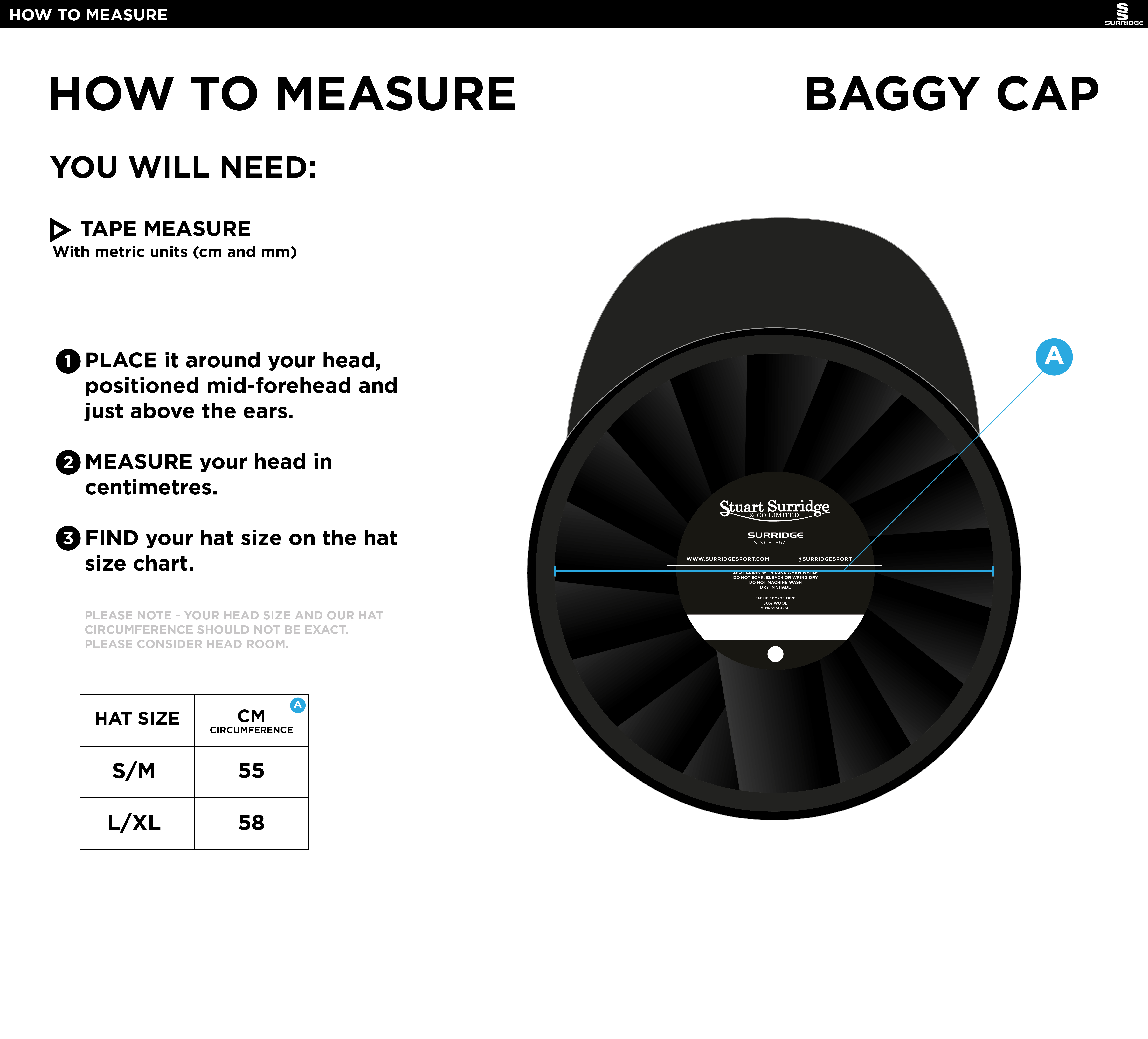 Melton wool baggy cap with elasticated back for extra comfortable and snug fit. Extra wide front panel to allow for embroidery.
